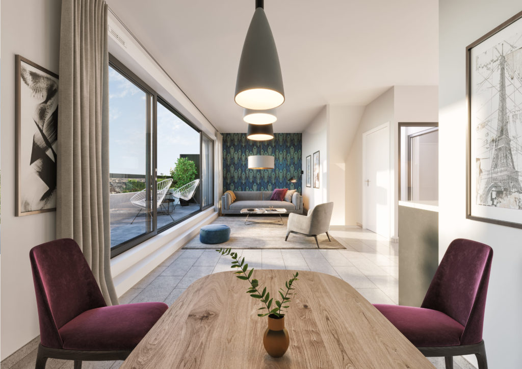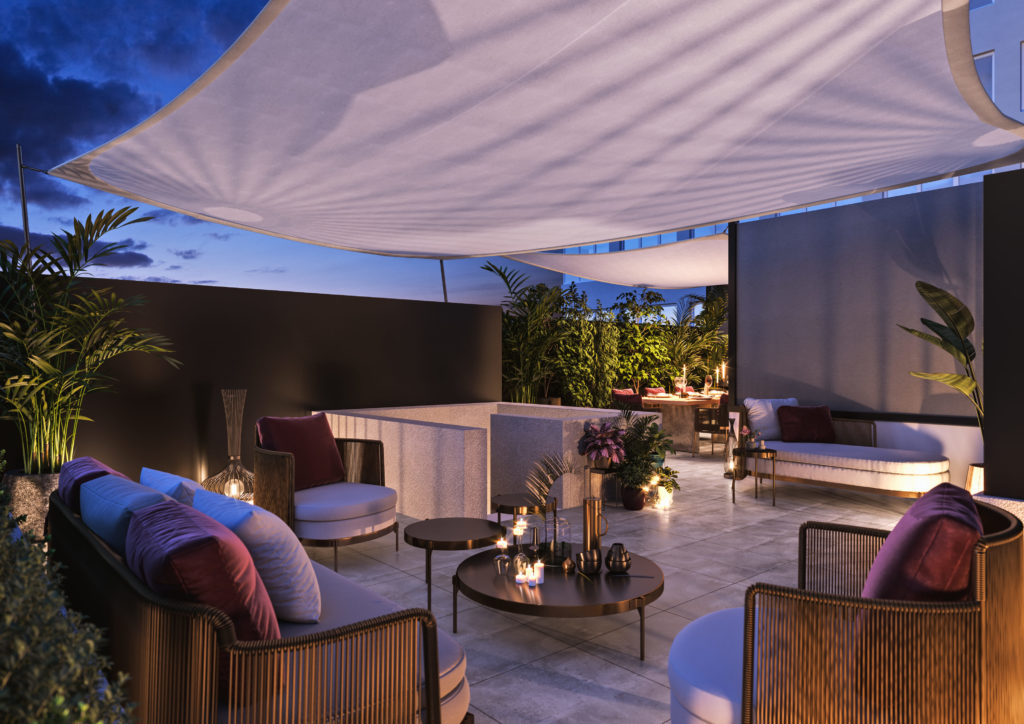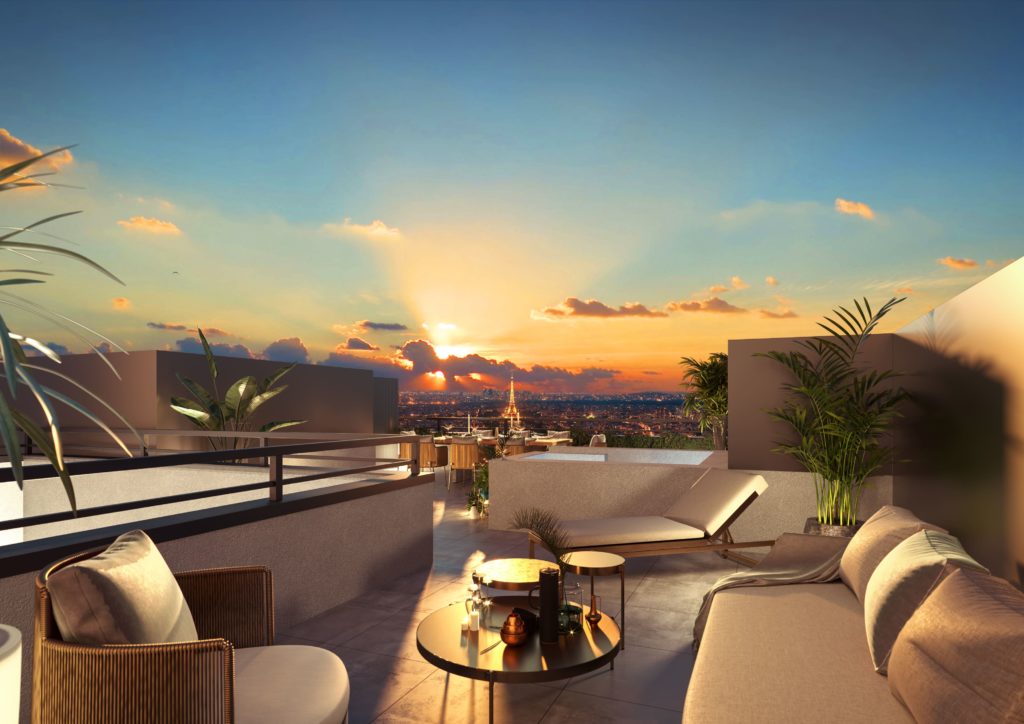 Le toit de l’immeuble accueille une terrasse accessible depuis les appartements en duplex, un espace privilégié entièrement privatif.